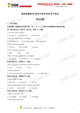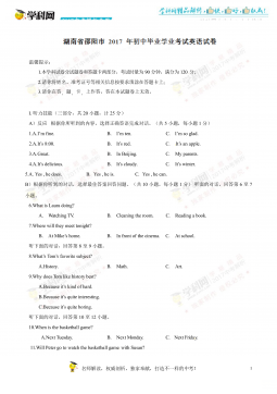 2017湖南衡阳英语试卷+答案+解析(word整理版)