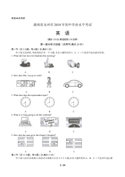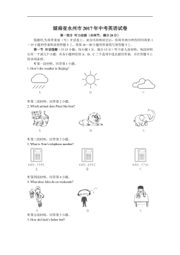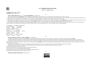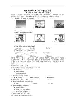 、2017年衡阳市初中毕业学业水平考试(满分:120分 考试时间:120分钟)Ⅰ.听力技能(共两个部分,20小题,计25分)(略)Ⅱ.阅读技能(共五个部分,30小题,计50分)(A) 完形填空。通读短文,掌握大意,然后从A、B、C三个选项中选择正确答案填空。(共10小题,计10分)Haveyoueverheardofe-waste(电子垃圾)?HowdoyoudealwithyourMP4players,mobilephonesandyourcomputerswhentheyrebrokenoryouwantanewone?Mostpeoplejustthrowthemaway.With...