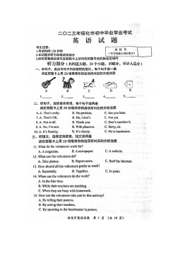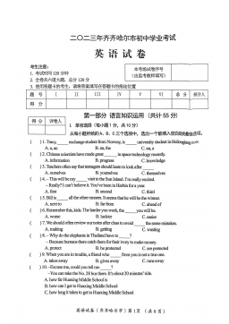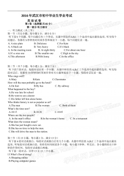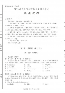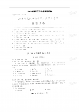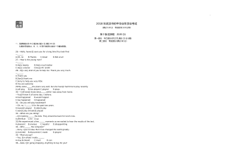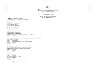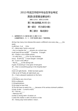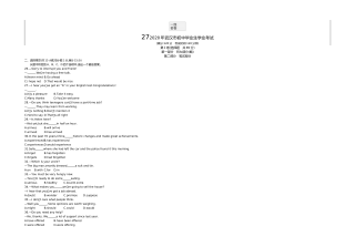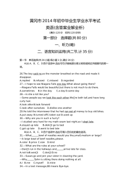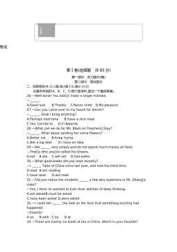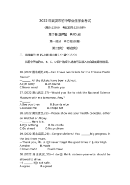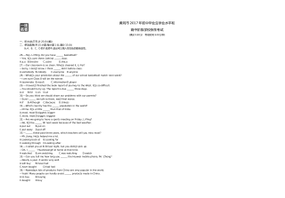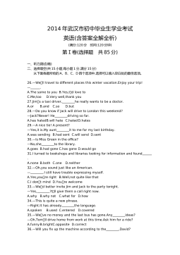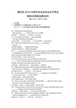 黄冈市2017年初中毕业生学业水平和高中阶段学校招生考试(满分:120分 考试时间:120分钟)一、听力(共三节,计25分)(略)二、单项选择(共15小题;每小题1分,满分15分) 从A、B、C、D四个选项中,选出可以填入空白处的最佳选项。 26.—Hey,LiMing.Doyouhave basketball? —Yes,itsoverthere,behind door. A.a,aB.the,theC.a,theD.the,a27.—Ourclassroomissoclean.Whoscleanedit,LiFei?—Sorr...
