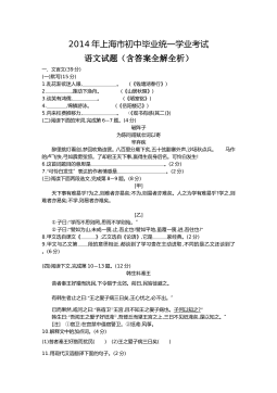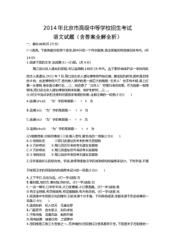 2014年北京市高级中等学校招生考试语文试题(含答案全解全析)一、基础·运用(共23分)(一)选择。下面各题均有四个选项,其中只有一个符合题意,选出答案后将其填在括号内。(共14分)1.阅读下面的文字,完成第(1)—(2)题。(共4分)周口店北京人遗址的发掘,可以追溯到上世纪20年代。为了更好地保护这一举世闻名的古人类遗址,2011年7月,周口店北京人遗址博物馆开始迁建。建成后的新馆,面积是旧馆的8倍。走进博物馆大厅,首先映入眼帘的是一座巨大的雕塑,“北京人”右手持木棍,肩上扛着一头猎物,身体直立着行走, ① 地还原了“北京人”狩猎归来的场景。作为国家一级博物馆,周口店北京人遗址博物馆用来收藏...