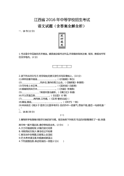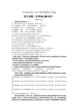 9江西省2021年初中学业水平考试(满分:120分 考试时间:150分钟)一、语言文字运用(10分)1.下列句子中,没有错别字且加点字注音全都正确的一项是(2分)( )A.大提琴的美感,一如夜晚的河流,无声无息地流淌(tǎn),如时光和记亿一样悄(qiǎo)然驻入人们的心灵。B.他是纯然一副淳(chún)朴自然相,故无须乎遵贵的虚饰;在为官职所羁(jì)拌时,他自称局促如辕下之驹。C.它咆哮(xiào),它奔藤,冲起的雪白浪头比岸上的山头还高,是激流,是浓雾,旋卷在一起,浩浩荡荡,凶涌澎湃(bài)。D.我蹑手蹑脚地从藏身的地方走出去,可就是在这一瞬间,所有的声音都戛(jiá)然而止,母鸟和...