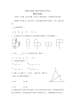 172020年云南省初中学业水平考试(满分:120分 考试时间:120分钟)一、填空题(本大题共6小题,每小题3分,共18分)1.中国是最早采用正负数表示相反意义的量的国家.某仓库运进面粉7吨,记为+7吨,那么运出面粉8吨应记为 吨. 2.如图,直线c与直线a、b都相交.若a∥b,∠1=54°,则∠2= 度. 3.要使√x-2有意义,则x的取值范围是 . 4.已知一个反比例函数的图象经过点(3,1),若该反比例函数的图象也经过点(-1,m),则m= . 5.若关于x的一元二次方程x2+2x+c=0有两个相等的实数根,则实数c的值为 . 6.已知四边形ABCD是矩形...