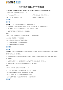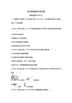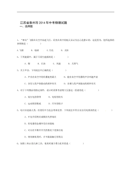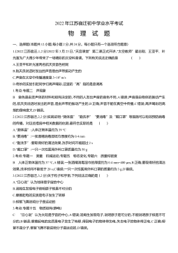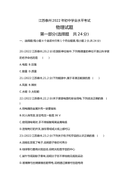 江苏泰州2022年初中学业水平考试物理试题第一部分(选择题 共24分)一、选择题(每小题4个选项中只有1个符合题意,每小题2分,共24分) 20.(2022江苏泰州,20,2分)在国际单位制中,下列物理量的单位不是以科学家的名字命名的是( )A.电阻B.压强C.能量D.质量21.(2022江苏泰州,21,2分)下列能源中,属于非清洁能源的是( )A.风能B.煤炭C.水能D.太阳能22.(2022江苏泰州,22,2分)关于家庭电路和安全用电,下列说法正确的是()A.用电器的金属外壳一定要接地B.对人体而言,安全电压一般是36VC.使用测电笔时,手不得接触笔尾金属电极D...