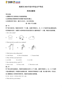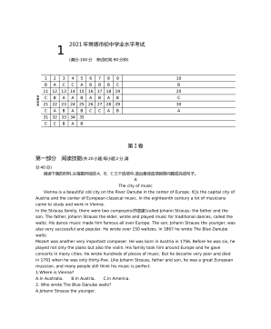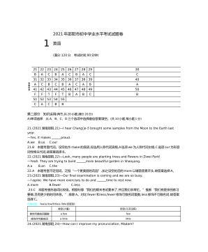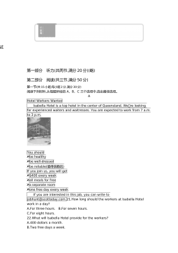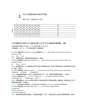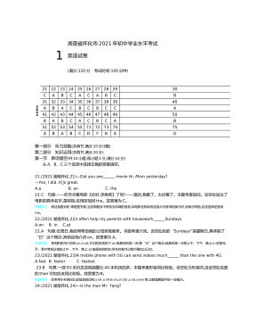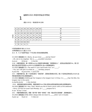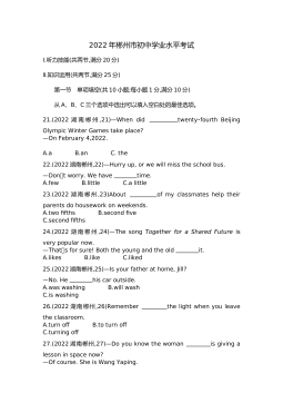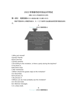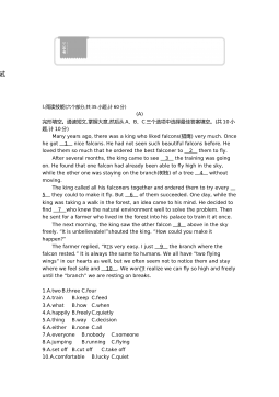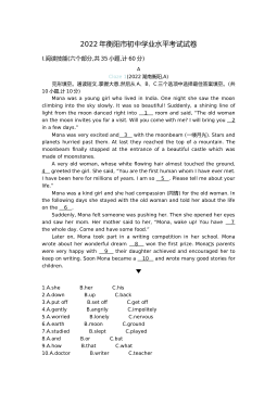 2022年衡阳市初中学业水平考试试卷Ⅰ.阅读技能(六个部分,共35小题,计60分)ACloze1(2022湖南衡阳,A) 完形填空。通读短文,掌握大意,然后从A、B、C三个选项中选择最佳答案填空。(共10小题,计10分)MonawasayounggirlwholivedinIndia.Onenightshesawthemoonclimbingintotheskyslowly.Itwassobeautiful!Suddenly,ashininglineoflightfromthemoondancedrightinto 1 roomandsaid,“Theoldwomanonthemooninv...