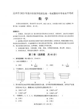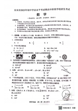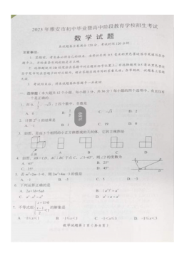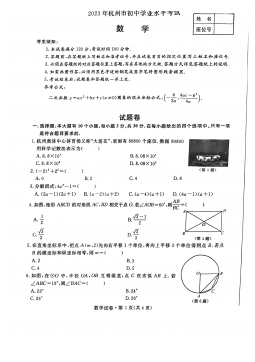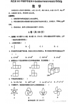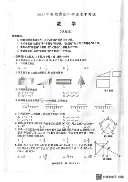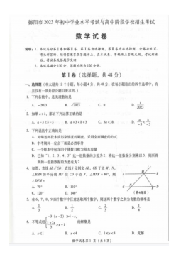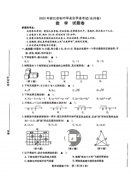 7.根据如图所示的二次函数y=a丑+bx+c的图象,判断反比例函数y=:与一次函数y=bx+c的图象大致是七``十宁第7题图ABCD8.如图,等腰Rt6邸C与矩形DEFG在同一水平线上,---4.-----------DG_______AB=DE=2,DG=3,现将等腰Rt6ABC沿箭头所芦至飞';气只片已言厂C-[二二形DEFG的重合部分面积记为y,则能大致反映y与BEF第8题图x的函数关系的图象为三归/归ABcD二、填空题(本大题共6个小题,每小题3分,共18分,只要求把最后结果填写在答题卡的相应区域内.)9.分解因式:x2—9y2=10.若在实数范围内有意义,则实数x的取值范围是.J11...