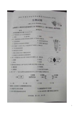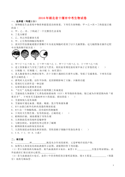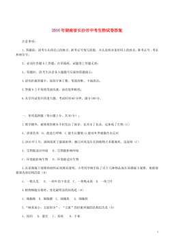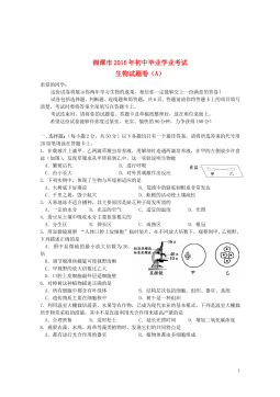 湘潭市2016年初中毕业学业考试生物试题卷(A)亲爱的同学:这份试卷将展示你两年学习生物的成果,相信你一定能够交上一份满意的答卷!试卷包括选择题、判断题、连线题和简答题,共6页。答题前请你将答题卡上的项目填写清楚,考试时要将答案全部填写在答题卡上。考试结束时,请将你的试题卷、答题卡及草稿纸整理好,放在座位桌面上。希望这份试卷能够伴你度过紧张、充实、愉快的90分钟,力争获得100分!一、选择题:(每小题2分,共50分)以下各题均只有一个最佳答案,请将所选答案的代号用2B铅笔填涂在答题卡上。1.在载玻片上滴甲、乙两滴草履虫培养液,用解剖针连通两滴培养液,在甲的左侧放少许食盐(如图),发现草履虫从甲...