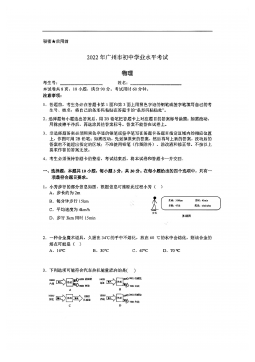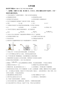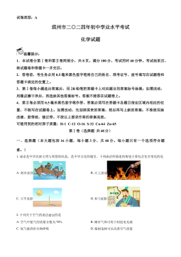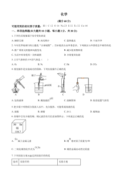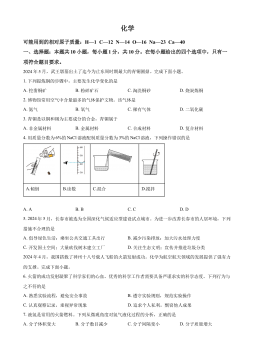 2024年广西初中学业水平考试化学注意事项:1.答题前,考生务必将姓名、准考证号填写在试卷和答题卡上。2.考生作答时,请在答题卡上作答(答题注意事项见答题卡),在本试卷、草稿纸上作答无效。3.考试结束后,将本试卷和答题卡一并交回。可能用到的相对原子质量:H-1Li-7C-12N-14O-16一、单项选择题(本大题共20小题,每小题2分,共40分。在每小题列出的四个备选项中,只有一项符合题目要求,错选、多选或未选均不得分。)1.地球是我们共同的家园,保护环境是每一位公民的责任。下列行为不符合该要求的是A.随手关闭电灯B.直接焚烧垃圾C.减少使用塑料袋D.使用清洁能源2.蔗糖产业被称为“甜蜜的事业...