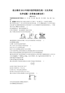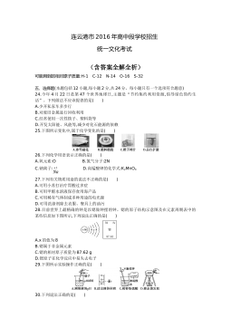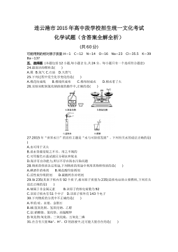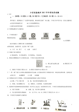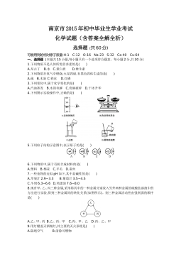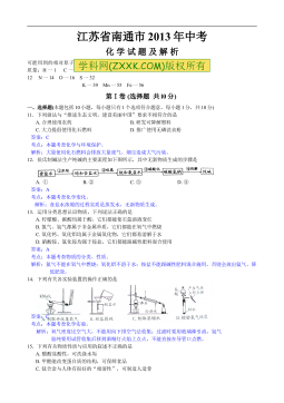 2015年江苏南京化学试卷+答案+解析(word整理版)