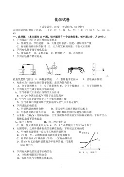 南京市2015年初中毕业生学业考试化学试题(含答案全解全析)选择题(共60分)可能用到的相对原子质量:H-1 C-12 O-16 Na-23 S-32 Ca-40 Cu-64一、选择题(本题共15小题,每小题只有一个选项符合题意。每小题2分,共30分)1.下列物质不是人体所需营养素的是( )A.尼古丁B.水C.蛋白质D.维生素2.下列物质在氧气中燃烧,火星四射,有黑色固体生成的是( )A.硫B.木炭C.铁丝D.红磷3.下列变化中,属于化学变化的是( )A.汽油挥发B.水的电解C.瓷碗破碎D.干冰升华4.下列图示实验操作中,正确的是( )5.下列粒子结构示意图中,表示原子的是( )6....