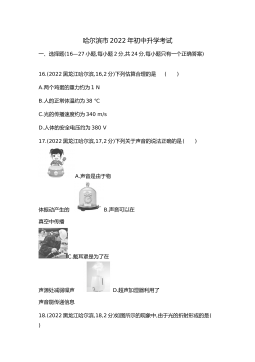 哈尔滨市2013年初中升学考试物理试题(含答案全解全析)一、选择题(每小题2分,共24分,每小题只有一个正确答案)16.如图所示,对基本测量仪器的操作和使用,正确的是( )17.下列有关声现象的说法,不正确的是( )A.吉他声是由琴弦的振动产生,并能像光一样在真空中进行传播B.用手指在同一根琴弦的不同位置按压,可以弹奏出音调不同的声音C.超声波可以粉碎结石,说明声音具有能量D.合理利用噪声可以控制植物提前或推迟发芽,以此来除掉杂草18.如图所示,对下列光学现象的描述或解释,正确的是( )A.“手影”是由光的折射形成的B.“海市蜃楼”是由光的反射形成的C.小女孩在平面镜中看到的是自己的虚像...