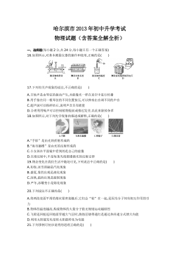 2013哈尔滨物理试卷+答案+解析(word整理版)